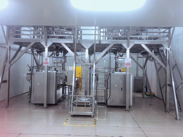 ②、称重系统采用高精度数字式称重传感器精确计量动态称重,运用微电脑高速运算以及多组重量组合中瞬时选定目标重量单元,根据称量物料特性可设置电机下料开口角度,避免损伤物料,称重定量包装机可对接上下游生产线实现生产包装自动化。